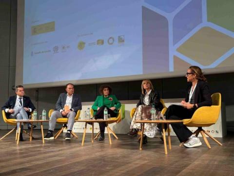 A alcaldesa de Santiago compartiu mesa redonda coa presidenta da Diputación de Barcelona, Lluïsa Moret Sabidó, co alcalde de Lorquí, Joaquín Hernández, e co alcalde de Lalín, Xosé Crespo. A mesa estivo moderada pola arquitecta e urbanista Carmen Mota.