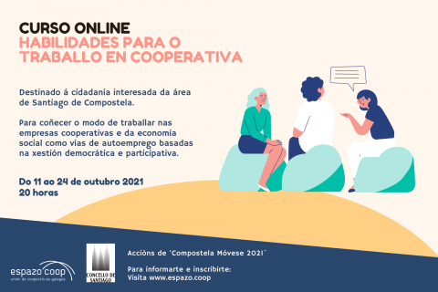 • Habilidades para o traballo en cooperativa. Con 20 h de duración impartirase do 11 ao 24 de outubro 2021.